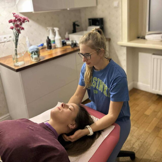 W swojej pracy wykorzystuje zaawansowane techniki terapii tkanek miękkich (m.in. wg Stecco), suche igłowanie oraz terapię stawów skroniowo-żuchwowych.